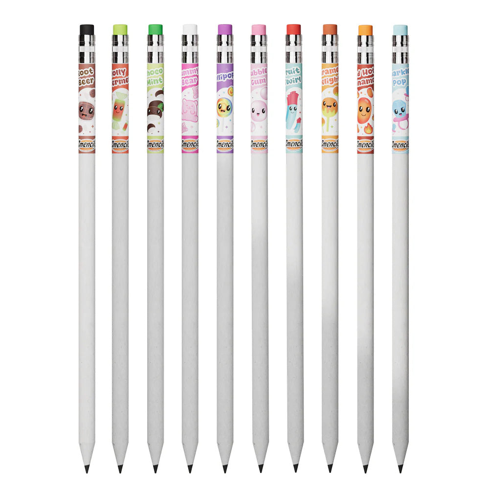 The Case of 10 Candy Counter Smencils Buckets includes 10 buckets of our scented Candy Counter pencils that are made from 100% recycled newspapers. Each Smencil is a No.2 graphite pencil and is packaged in its own recyclable plastic freshness tube that includes a collectible top cap! Each bucket comes with 50 Candy Counter Smencils. You will receive 10 each of the 5 scents per bucket.