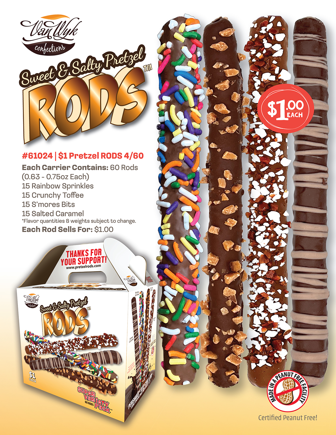 - Sweet & Salty Pretzel Rods are our most popular item!