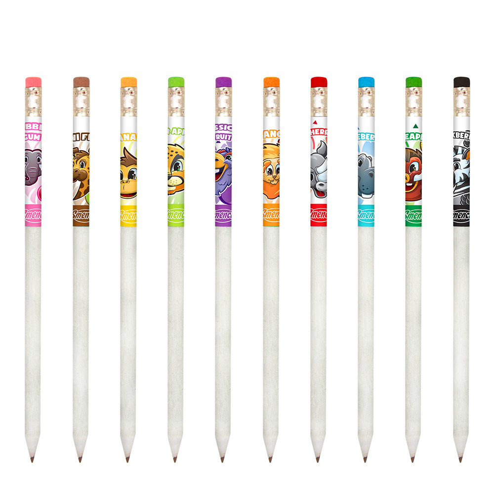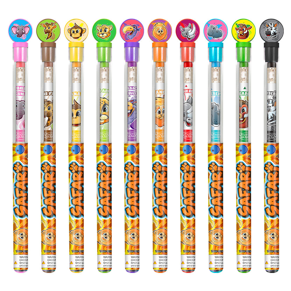 The Case of 10 Safari Smencils Buckets includes 10 buckets of our scented Safari pencils that are made from 100% recycled newspapers. Each Smencil is a No.2 graphite pencil and is packaged in its own recyclable plastic freshness tube that includes a collectible top cap! Each bucket comes with 50 Safari Smencils. You will receive 10 each of the 5 scents per bucket.